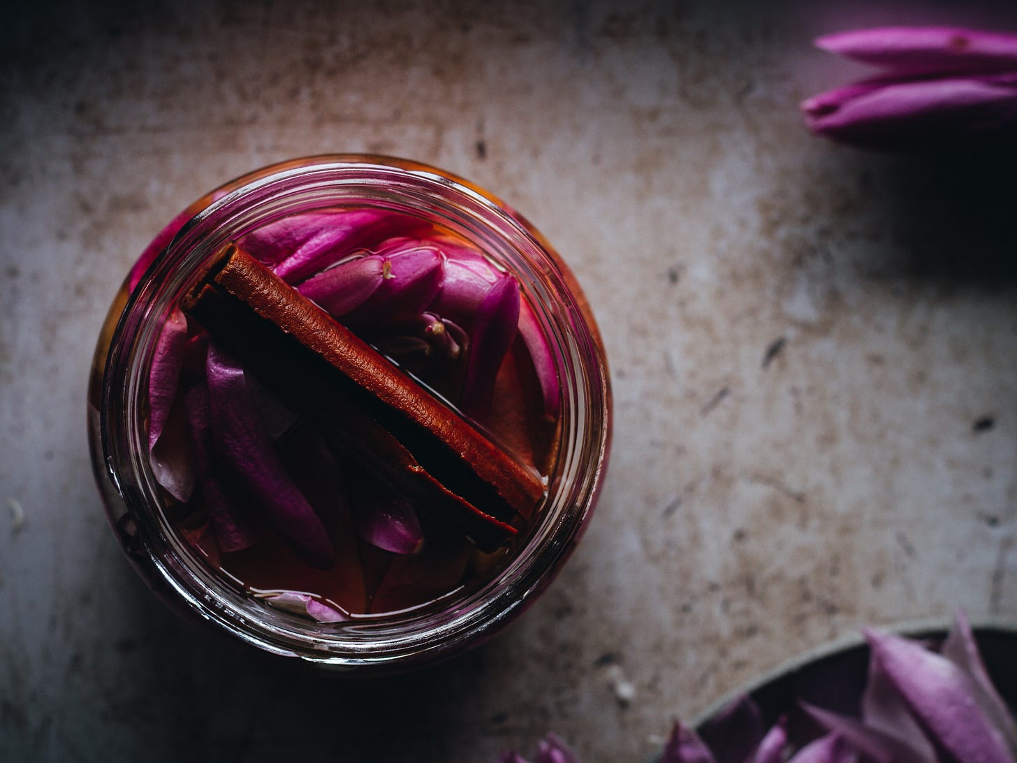 Kombucha pickled magnolia petals